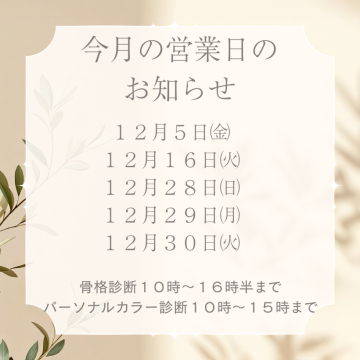 12月パーソナルカラー&骨格診断営業日のお知らせ