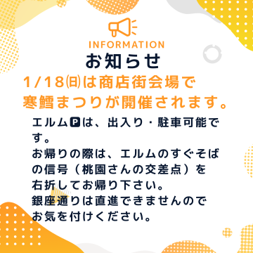 1/18㈰は、商店街で寒鱈まつりが開催されます。