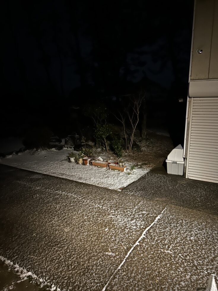 今日も庄内中を走り回っておりましたが、とにかく寒い! 気温はそれほど低いわけではないのですがね。 そして夜にかけてさらに寒さが増し、こんな感じです。 ちょっと雪が積もってきております。 11月には積雪…