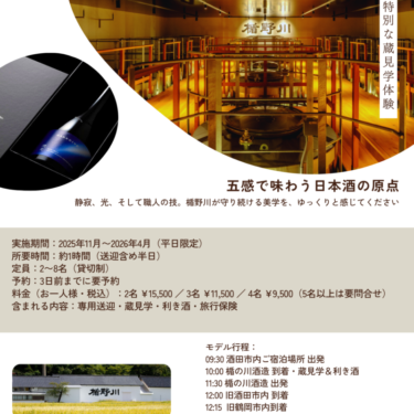 酒田市内ホテル発着、楯野川酒造蔵元見学ツア-
