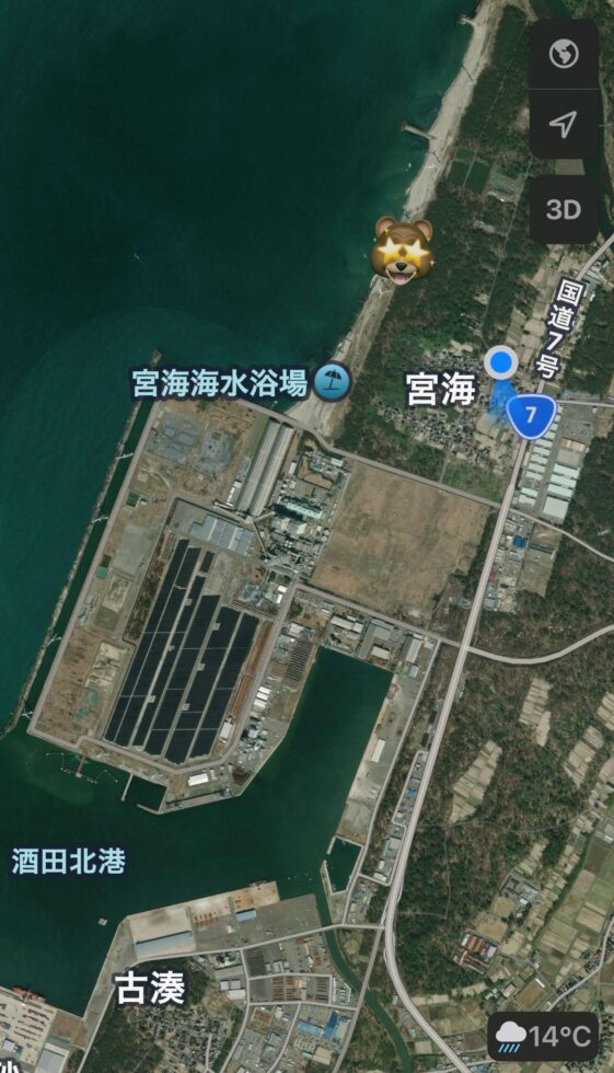ただいま、当事務所がある酒田市宮海地区に戦慄が走っております!! 昨日、宮海海水浴場から程近い海岸において、熊が目撃されました。 写真の🐻マークのあたりのようです。 さらに、今朝は宮海地区の住宅街でも…