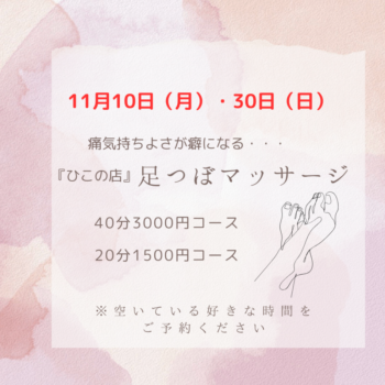 こんにちは、 いつもブログを読んで頂きありがとうございます。 光ヶ丘にあるほぐしサロンRianです。 11月に入りましたね 過ごしやすいのですが乾燥と日中、朝、夜の気温差に気をつけたい …