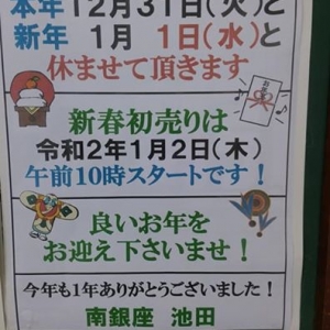 年末年始の営業について【休業12/28~1/5】