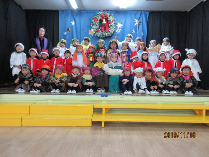 12月7日に酒田ふたば園クリスマス礼拝がありました。 たんぽぽ・すみれ組(0.1歳児) 「おほしがひかる」「あわてんぼうのサンタクロース」「ジングルベル」の3曲を踊りました。 日々の練習を積み重ね、1人ひとり本番でも