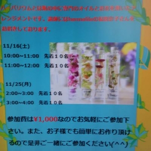 ただ今当店2階におきましてフラワーアレンジメント教室、ハーバリウム体験レッスンを開催中です!