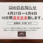 GW営業時間のお知らせ