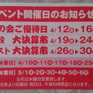 4月は決算売り出しのため、営業日、休業日が変わります。