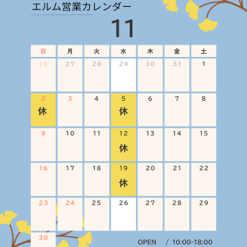 11月のパーソナルカラー診断・骨格診断予約受付表